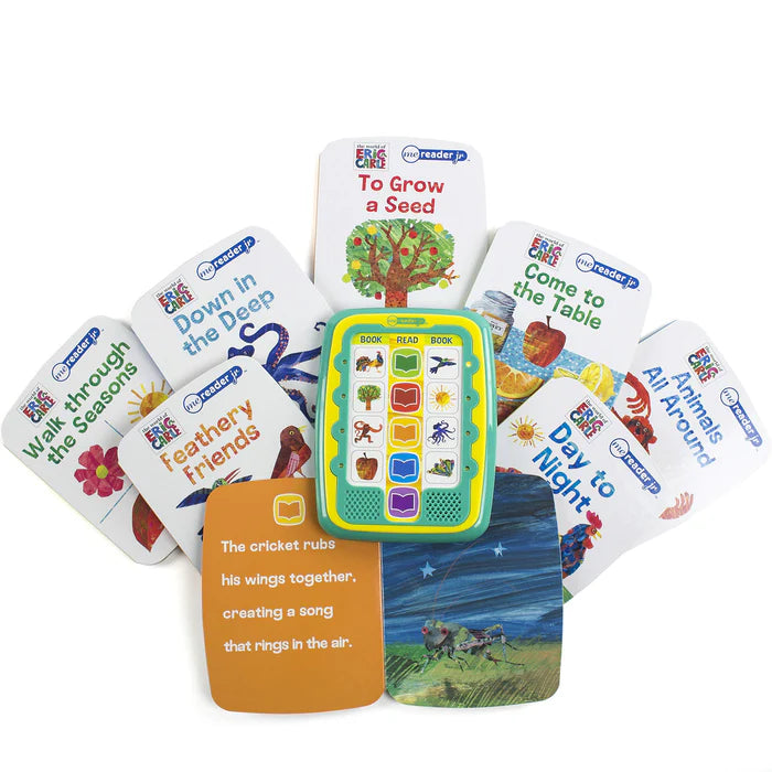 8 great different books. Feathery Friends, Animals All Around, Down in the Deep, To Grow a Seed, Walk through the Seasons, Flutter Fly Sing and Spin, Day to Night, and Come to the Table. (Does not come with the electric reader.)